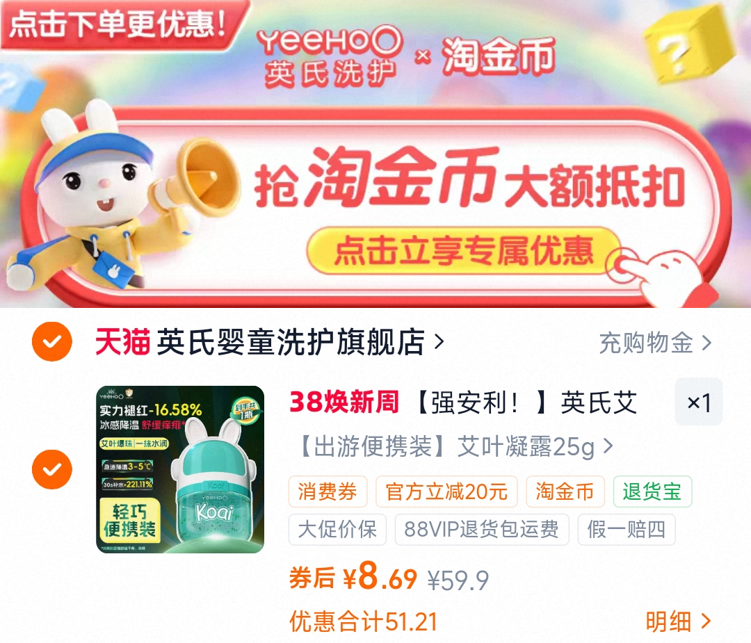 下拉拍,8.6元 英氏儿童艾叶双萃凝露面霜25g好单发报员2026年03月08日 17:320举报 下拉拍,8.6元英氏儿童艾叶双萃凝露面霜25ghttps://m.tb.cn/h.id1WAFw复制文案