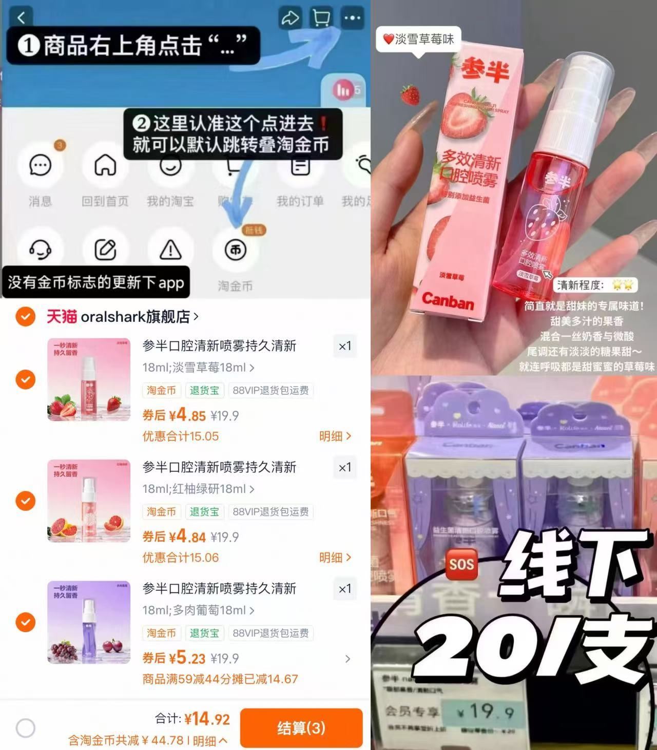 4.9/支参半清新口腔喷雾 右上叠金币14元.9任选3支 复制这条信息打开手机陶宝好单发报员2026年03月08日 18:190举报 4.9/支参半清新口腔喷雾右上叠金币14元.9任选3支https://m.tb.cn/h.idLTOB1复制这条信息打开手机陶宝https://m.tb.cn/h.i2m28VS漱口水 清新剂一支多效99.9%杀菌去异味不辣嘴复制文案