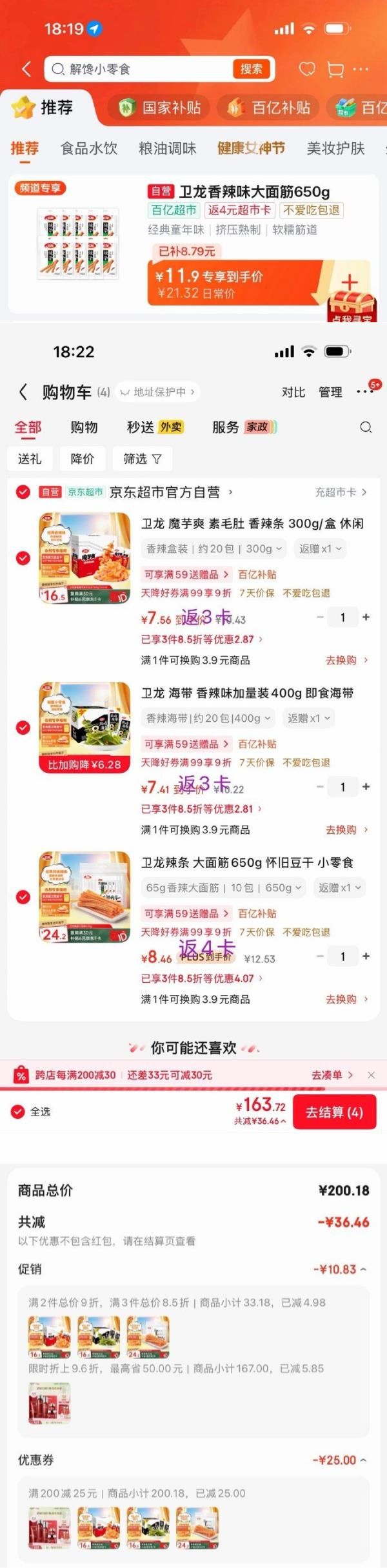 可翻到卫龙多款,一起凑3件8.5折及plus券,比如: