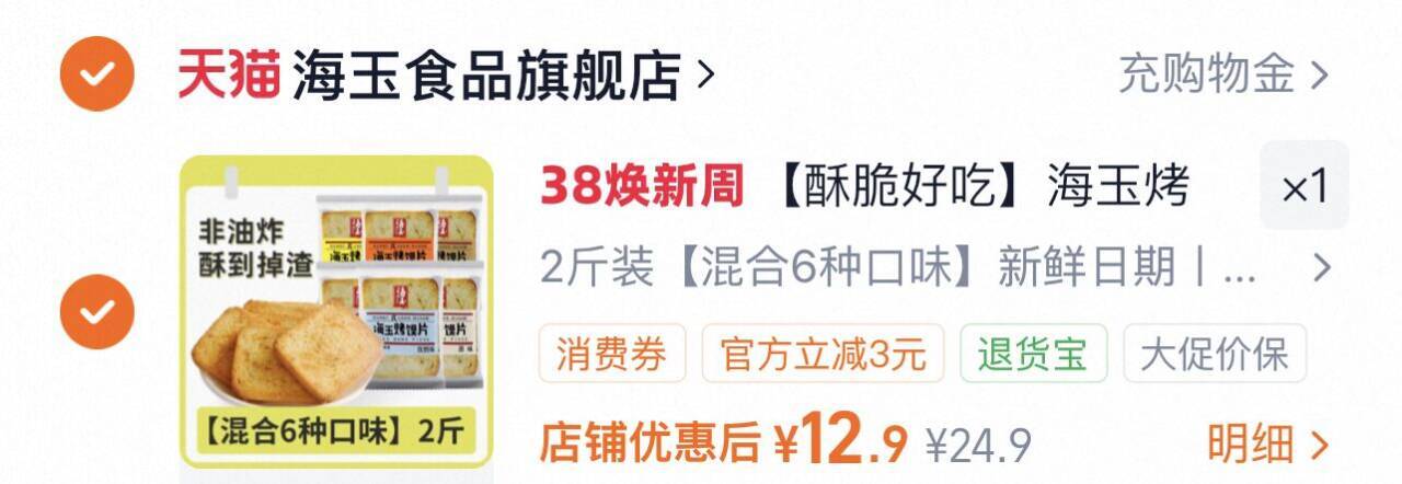 12.9亓6.4/斤 海玉烤馍片多口味2斤装