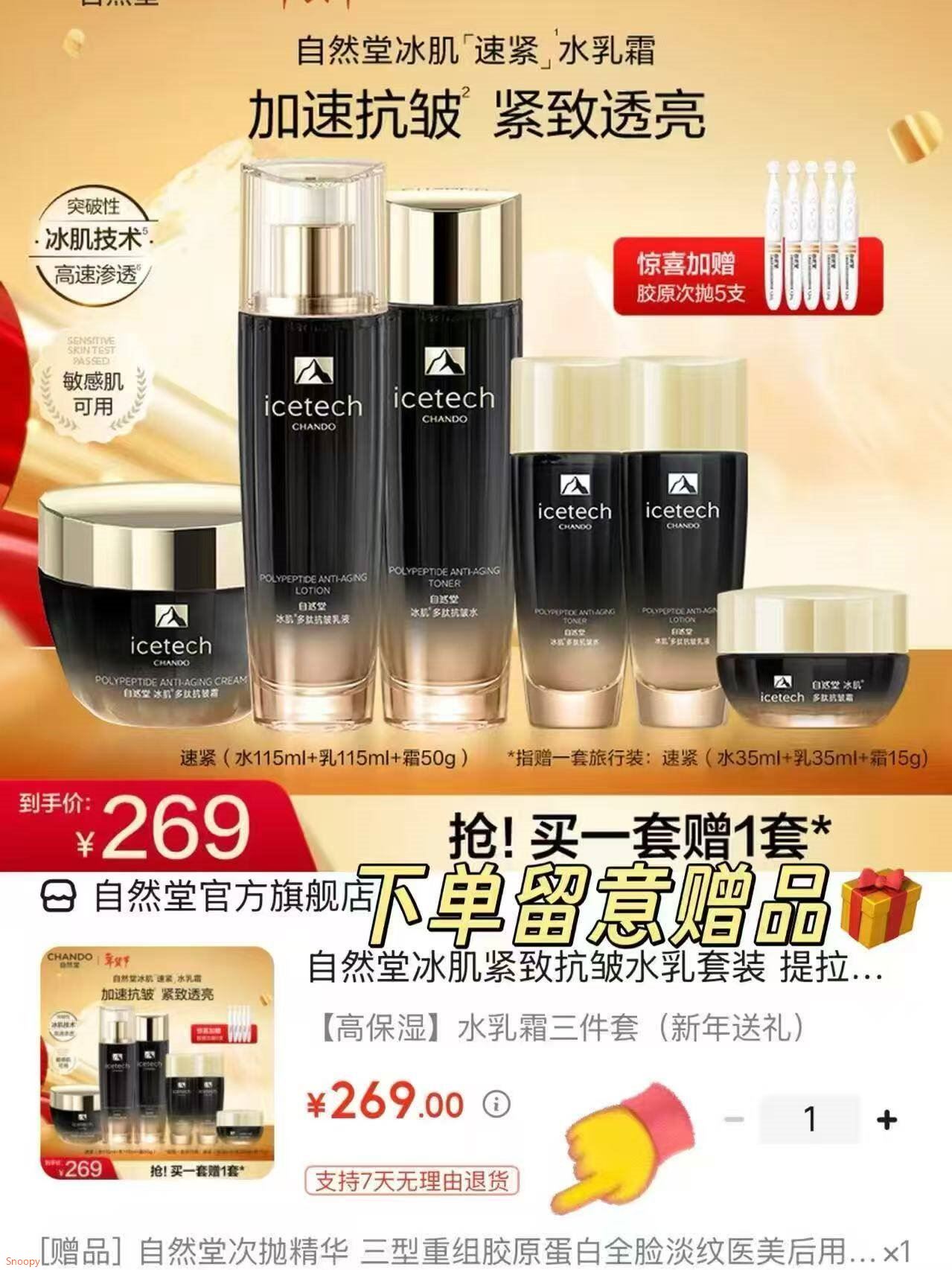 自然堂 保湿水/乳/面霜3件套
