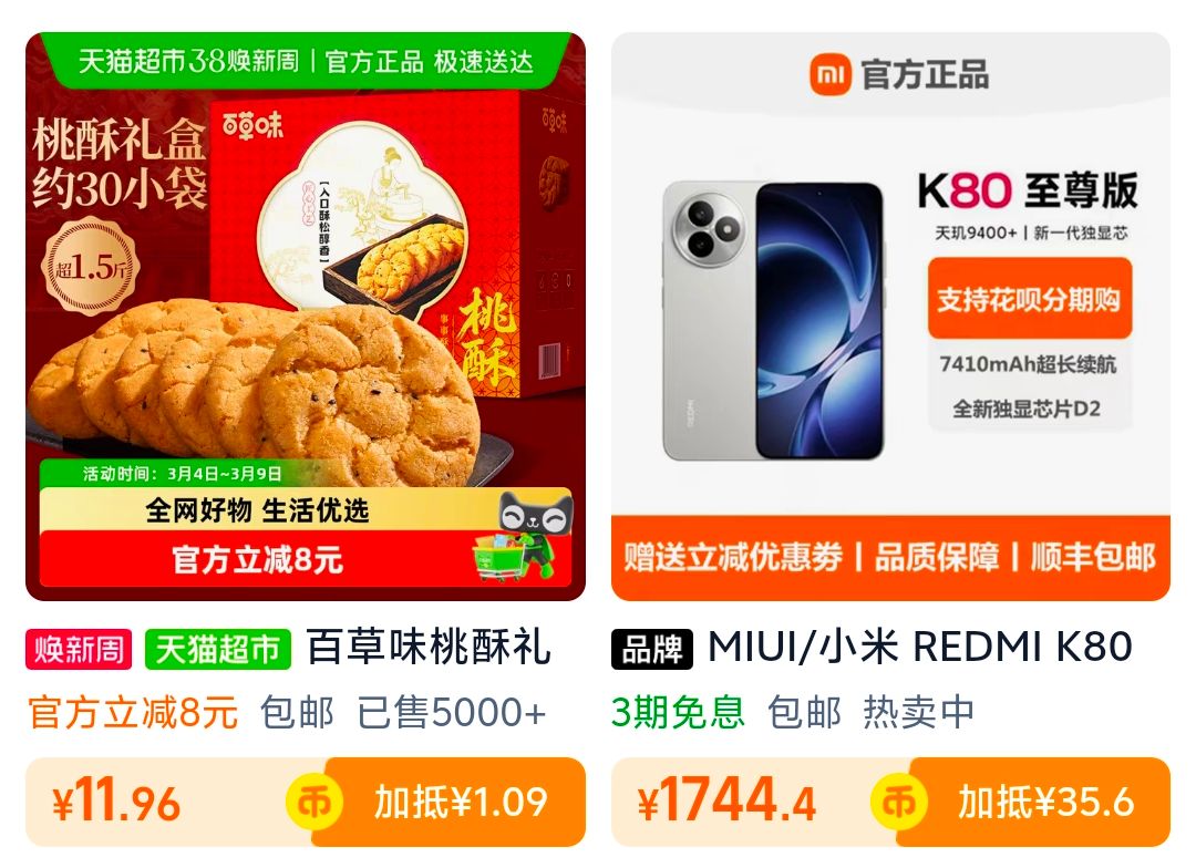 有3亓福袋,陶金币加购,11.9亓 百草味年货桃酥礼盒800g/箱 好单发报员 2026年03月08日 21:09 0 举报 有3亓福袋,陶金币加购,11.9亓百草味年货桃酥礼盒800g/箱https://m.tb.cn/h.ideuVcR 复制文案