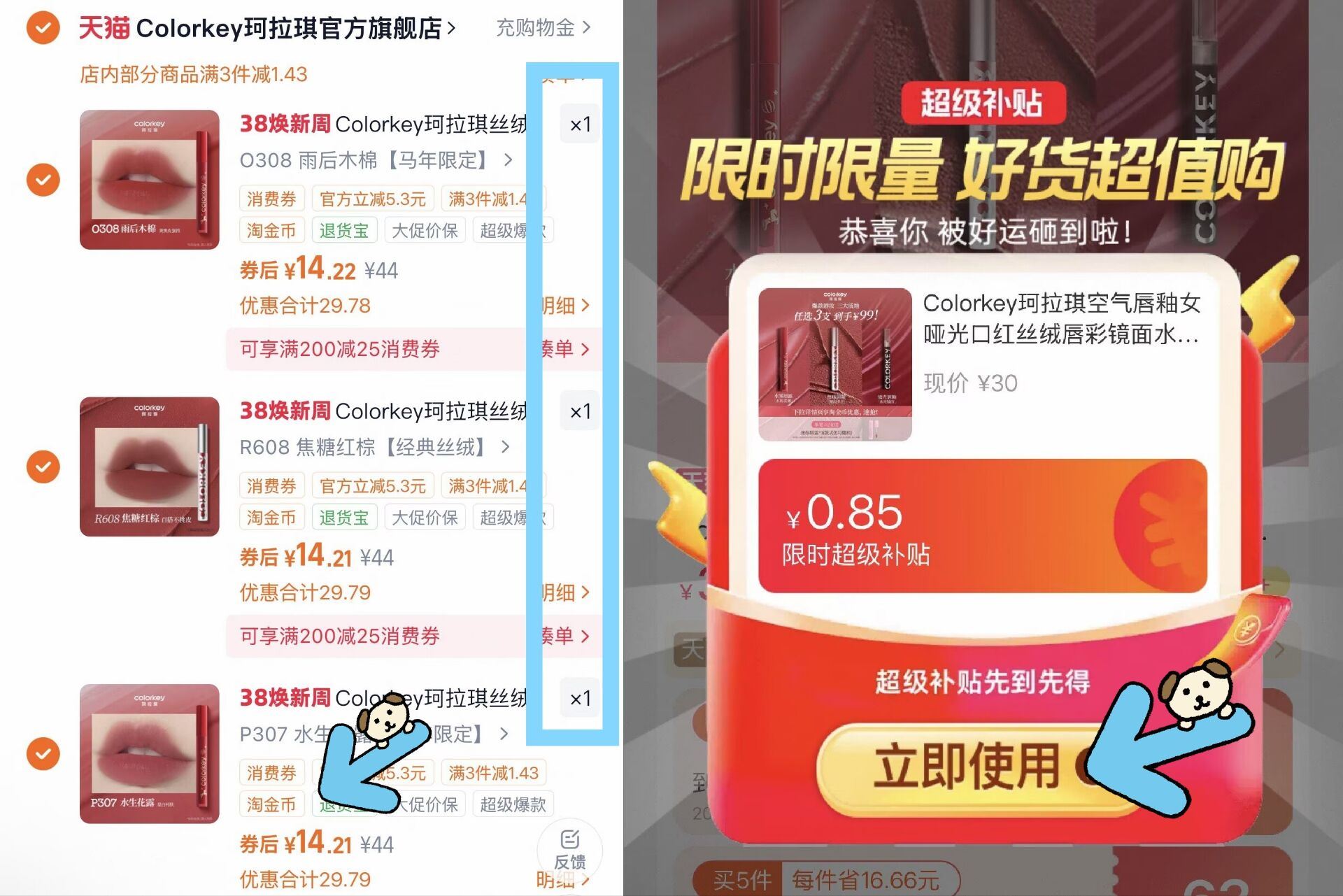 拍3件42.6元!送mini唇露1个
