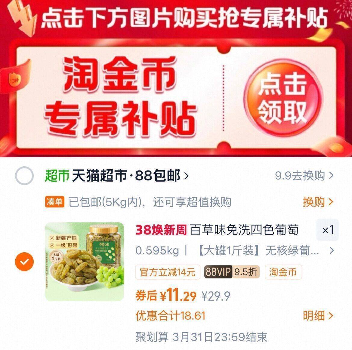 88vip11亓神圿!拍第2个选项 下拉详情页进金币会场拍下 百草味 无核葡萄干500g罐装好单发报员2026年03月08日 22:210举报 88vip11亓神圿!拍第2个选项下拉详情页进金币会场拍下百草味 无核葡萄干500g罐装https://m.tb.cn/h.idf6rz5复制文案