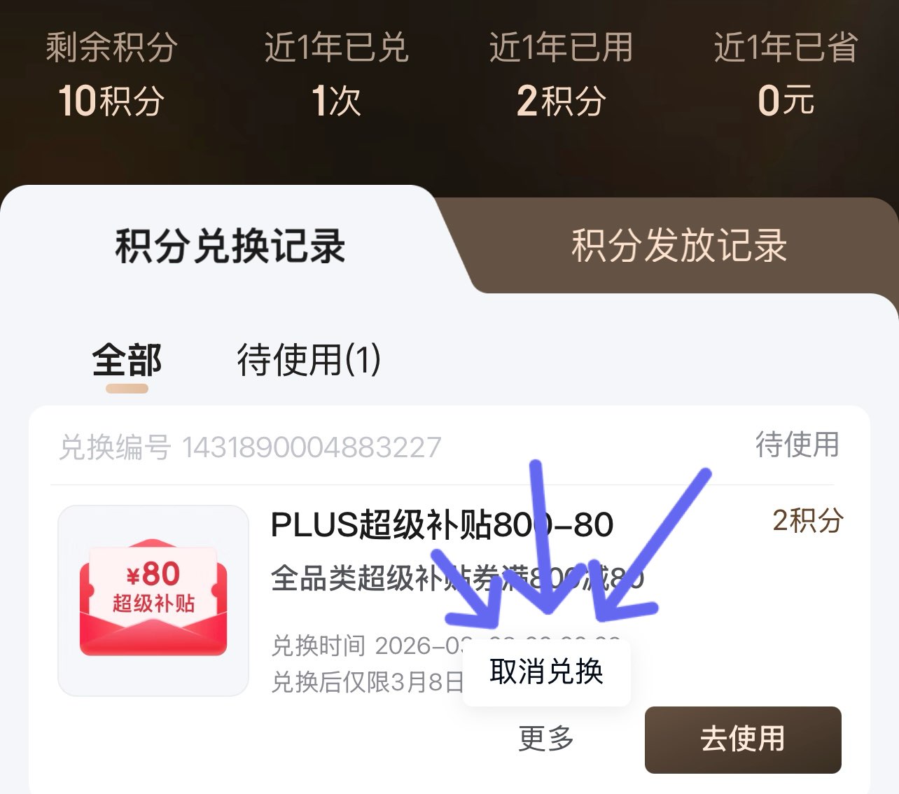 没用掉的券记得2点前去退了