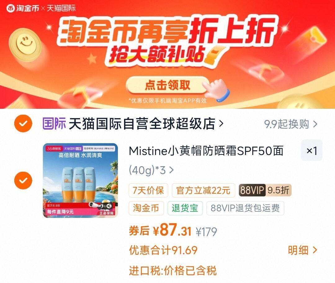29/瓶下拉拍87.3亓 Mistine蜜丝婷防晒霜40ml*3只好单发报员2026年03月08日 22:360举报 29/瓶下拉拍87.3亓Mistine蜜丝婷防晒霜40ml*3只https://m.tb.cn/h.iWFRONW复制文案