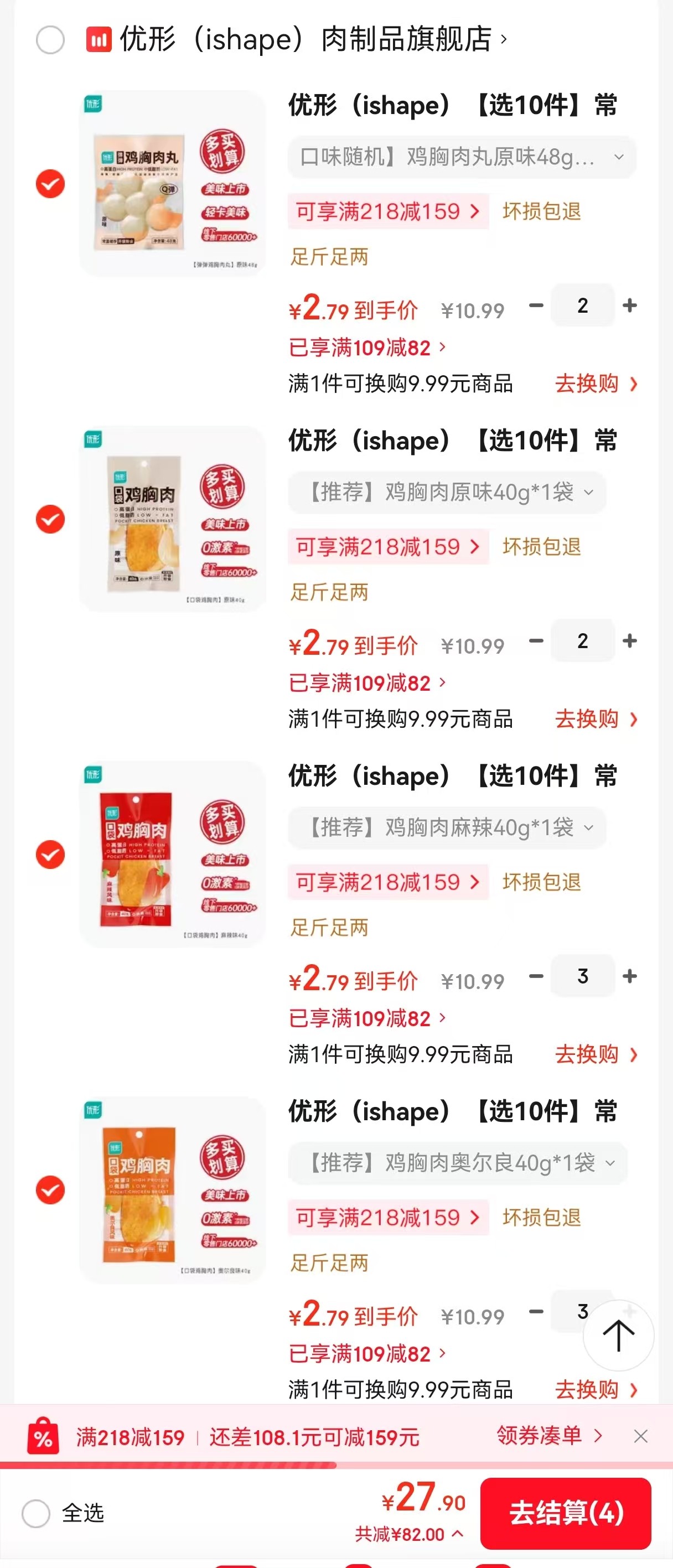 优形 常温鸡胸肉鸡 奥尔良40g*1袋等,任选10件【27.9】