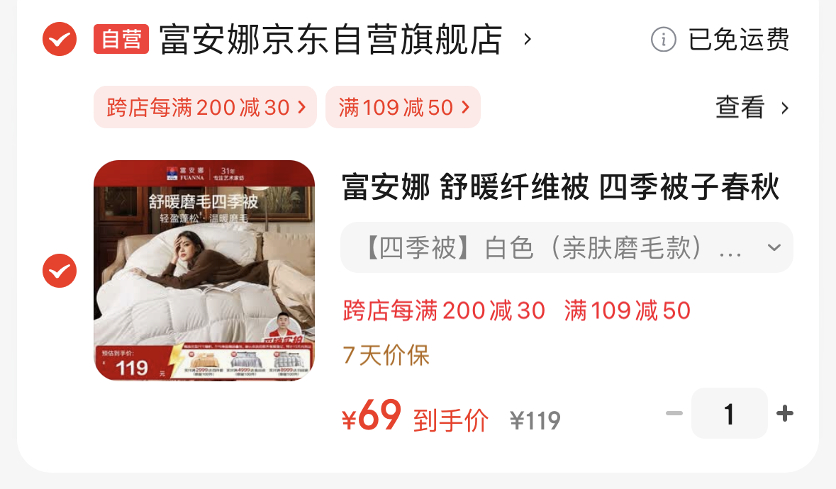 【自营】富安娜 舒暖七孔四季被230*229cm