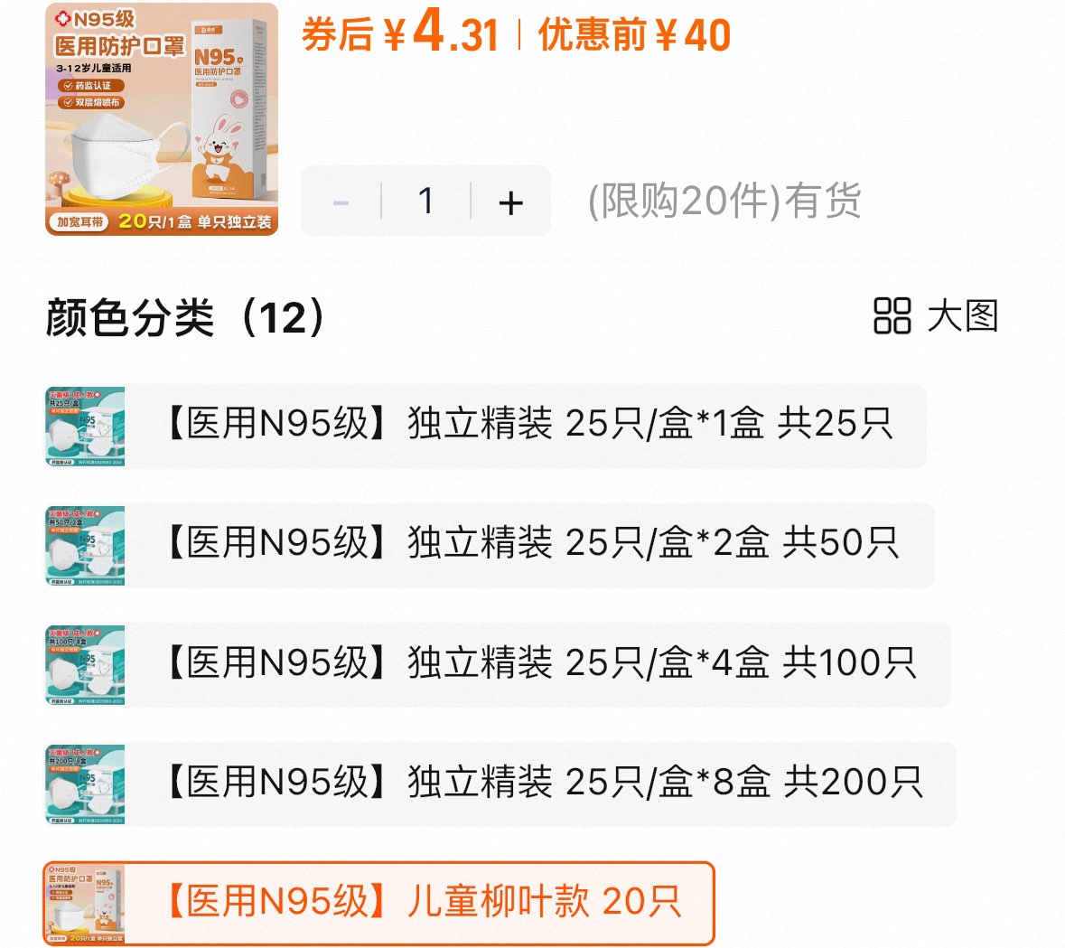 医用口罩过金币儿童20个选项4.3亓