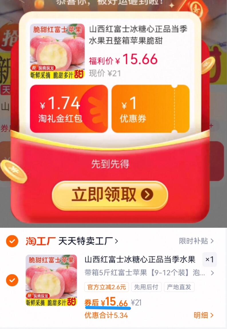 3.4元/斤好价叠礼金 拍下15.6元!超市1斤9块多 山西红富士苹果净重4.5斤好单发报员2026年03月09日 12:510举报 3.4元/斤好价叠礼金拍下15.6元!超市1斤9块多山西红富士苹果净重4.5斤https://m.tb.cn/h.i3gyGEa复制这条信息打开手机陶宝https://m.tb.cn/h.i3gBLUC复制文案