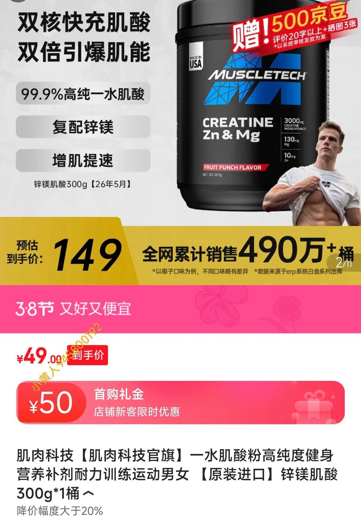 肌肉科技 一水肌酸粉 300g*1桶,叠首购晒返5到手44