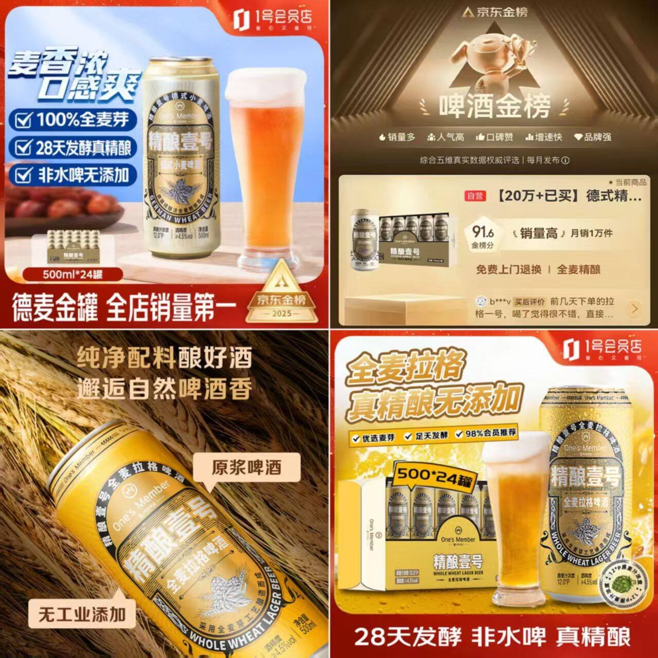 精酿啤酒百补 自营 Ones Member 精酿 壹号/拉格啤酒500ml*24罐