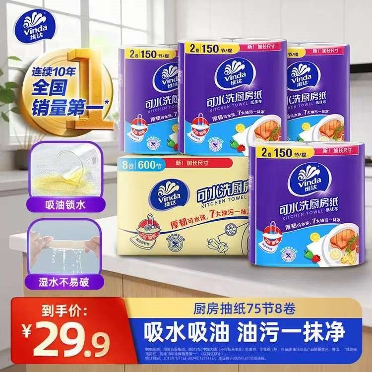 维达 家用厨房卷纸75节*8卷