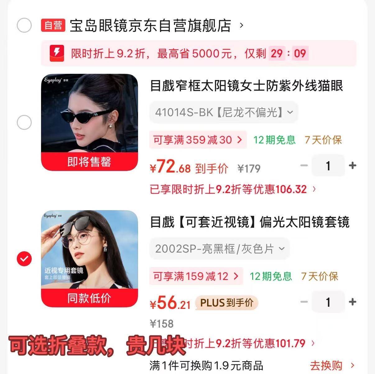 72元目戲窄框太阳镜