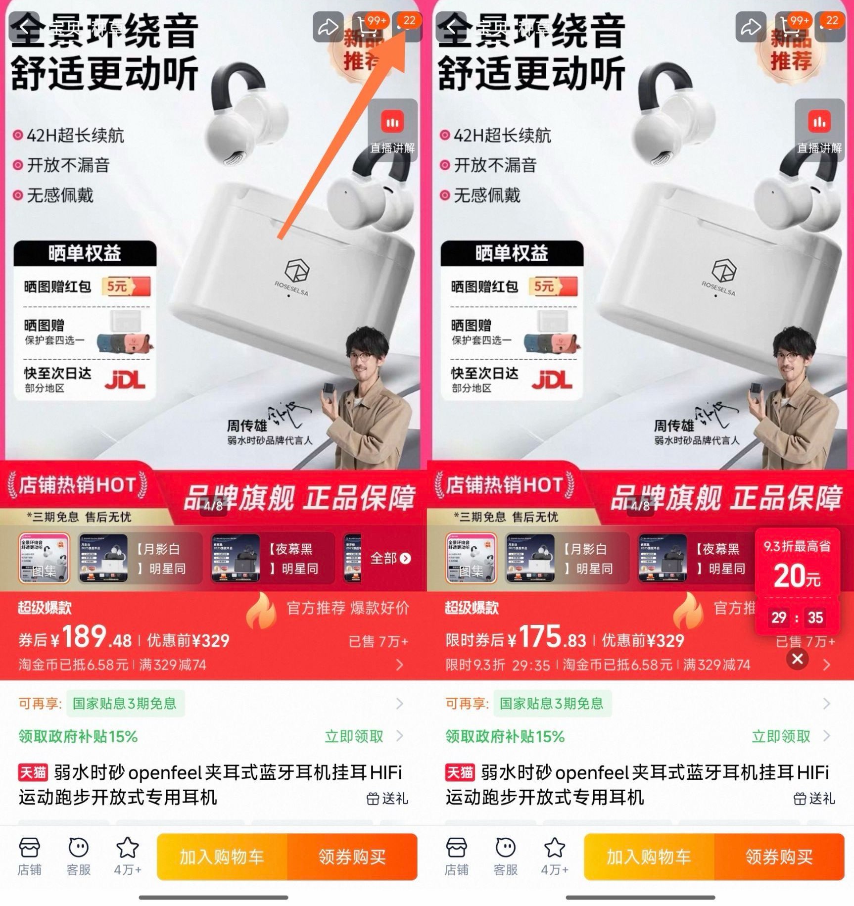 弱水时砂openfeel夹耳式蓝牙耳机挂耳HIFi运动跑步开放式【184】右上角桃今必,晒tu 5