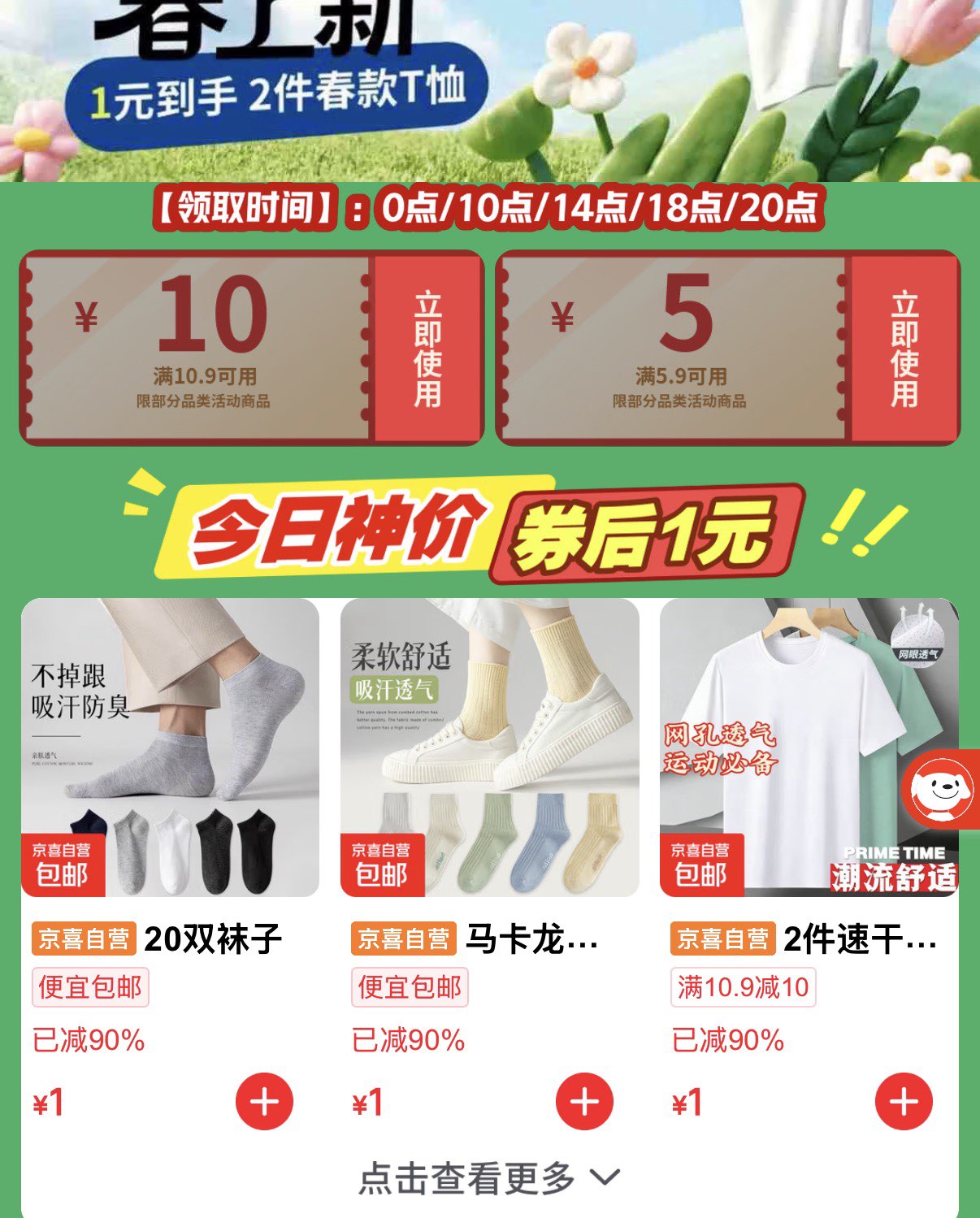京东特价页面领10.9-10券