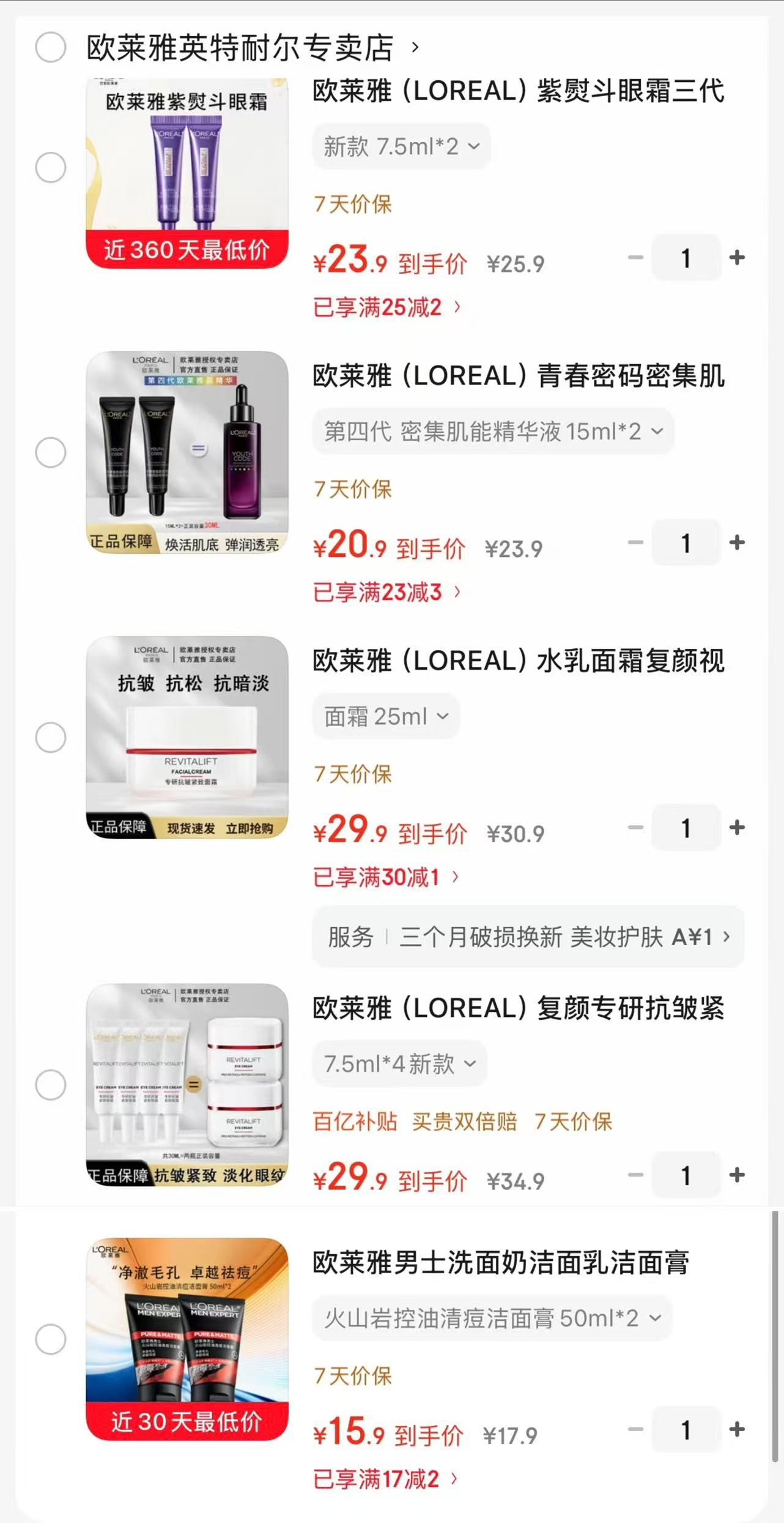 欧莱雅 复颜专研抗皱紧致眼霜7.5ml*4【29.9】