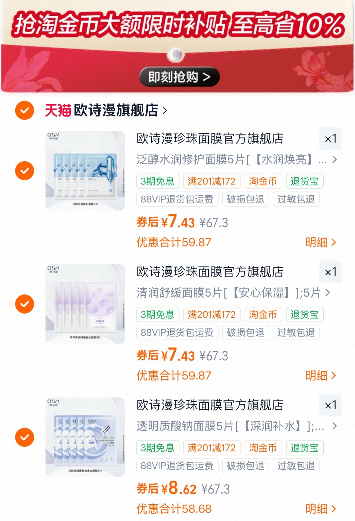 下拉详情拍 23.4亓,折1.5亓/片 欧诗漫舒缓修护面膜共15片好单发报员2026年03月14日 10:100举报 下拉详情拍23.4亓,折1.5亓/片欧诗漫舒缓修护面膜共15片https://m.tb.cn/h.iVKyWWV复制文案