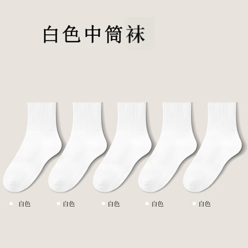 ①2件22.8元 男纯色中筒袜 5双