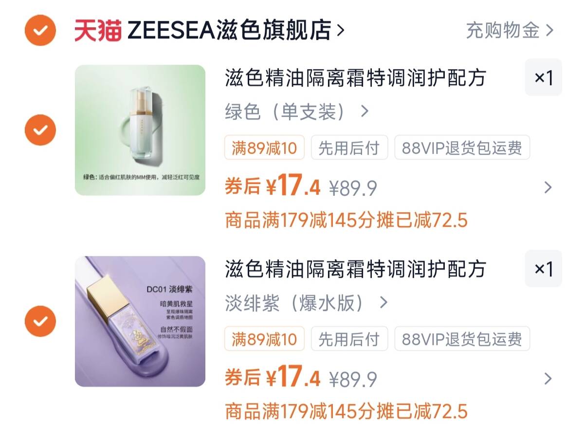 ZEESEA滋色精油隔离霜 拍件34.8元好单发报员2026年03月15日 20:390举报 ZEESEA滋色精油隔离霜拍件34.8元,折17.4一支https://m.tb.cn/h.iUiXPLR复制文案