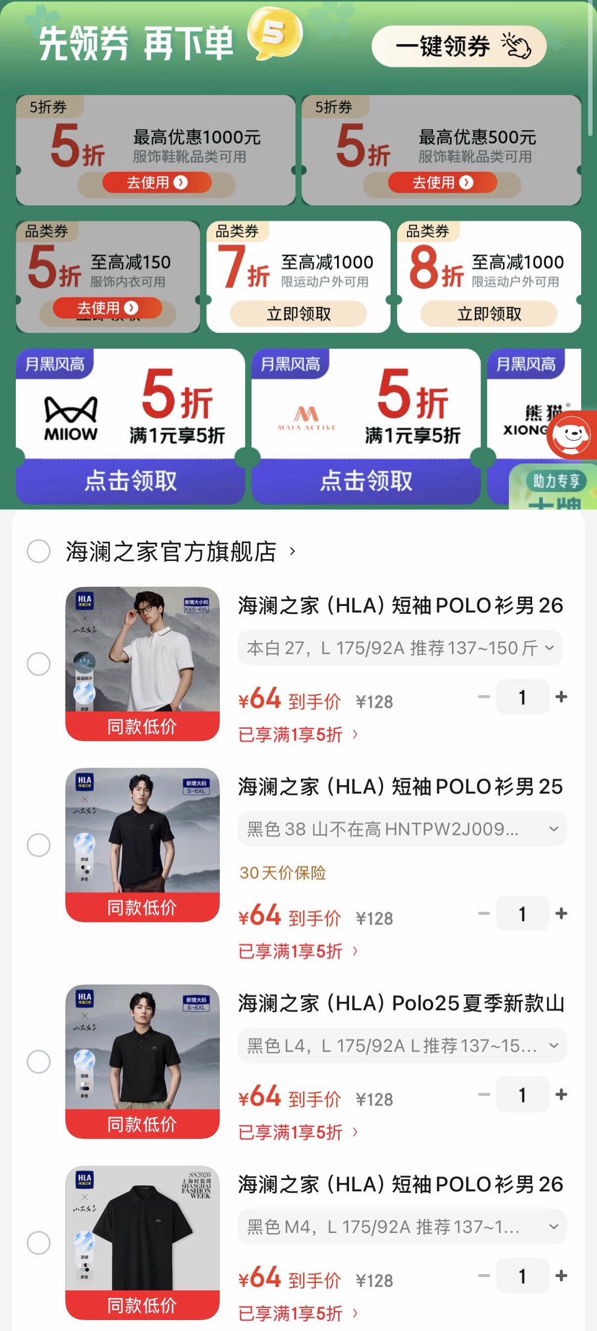 海澜之家Polo衫任选64元