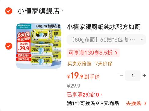小植家纯水湿厕纸60抽*6包