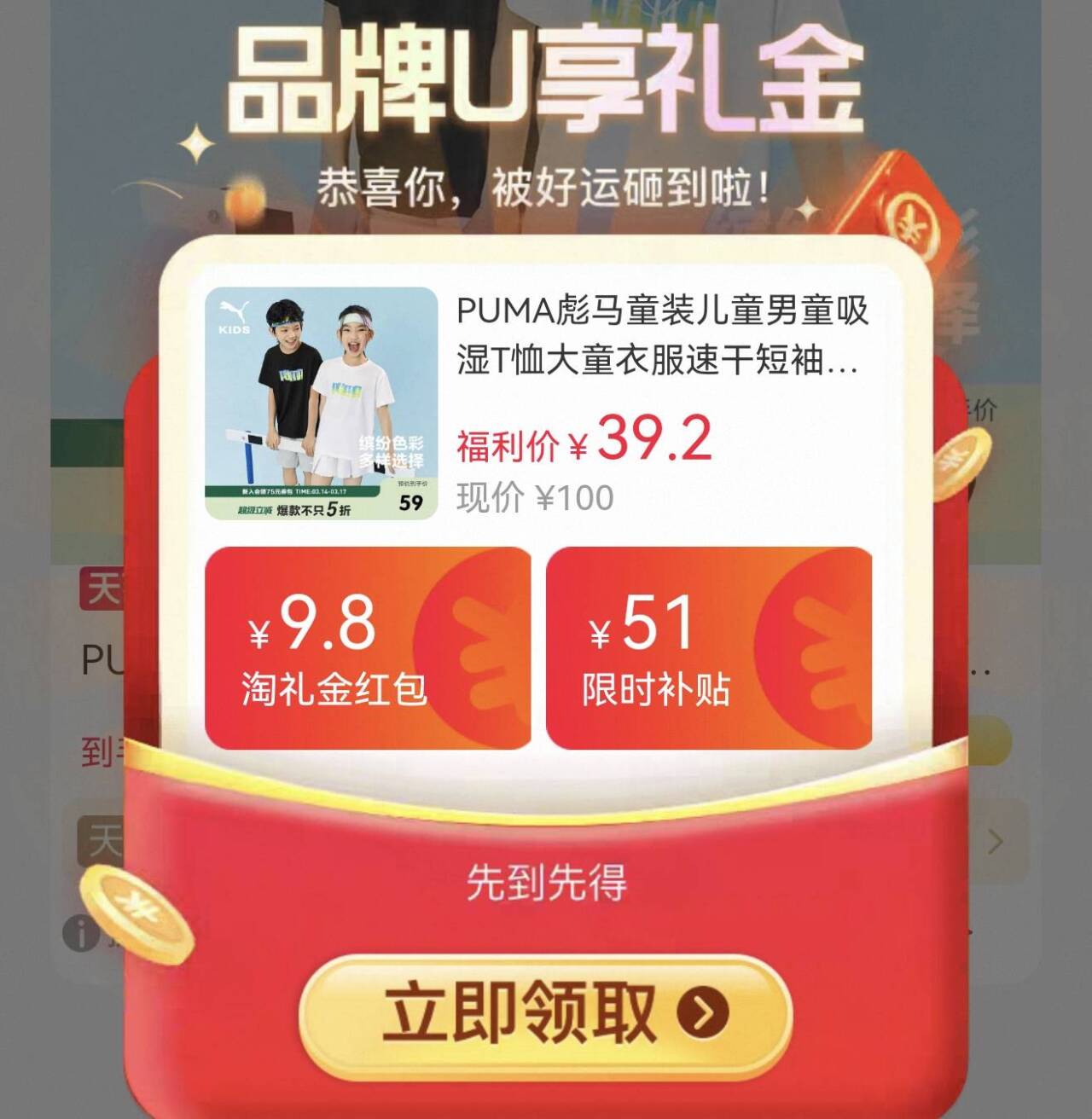 39.2元PUMA儿童运动短袖 男女都有 尺码110-170cm 好单发报员 2026年03月17日 10:53 0 举报 39.2元PUMA儿童运动短袖男女都有,尺码110-170cmhttps://m.tb.cn/h.ifBPTk6 复制文案