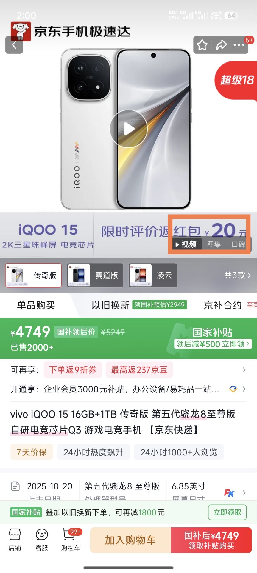 iQOO 15 传奇版 16 1TB【4729】国补,嗮阪20