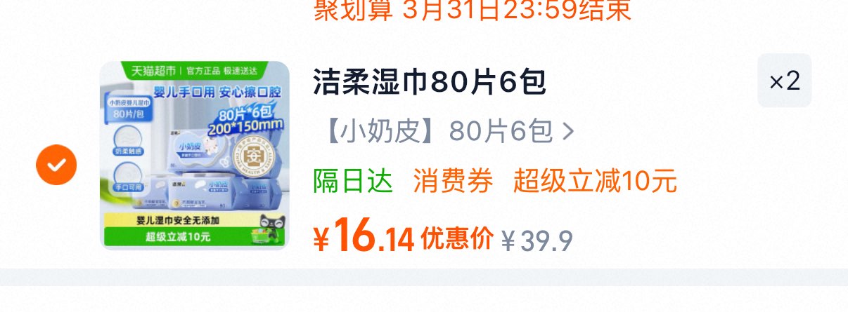洁柔婴儿湿巾小奶皮80片6包 拍2件凑标题下政府补贴88-5后16.14/件好单发报员2026年03月17日 17:180举报 洁柔婴儿湿巾小奶皮80片6包超级补贴领39-6洪包加购拍2件凑标题下政府补贴88-5后16.14/件https://m.tb.cn/h.i5FBiSL凑https://m.tb.cn/h.iUsO9IY复制文案