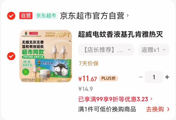 超威 电热蚊香液3瓶 1加热器