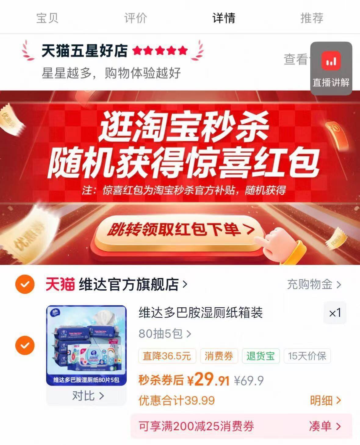 5.9/包维达多巴胺湿厕纸 29.9元5包*80抽 擦完和水洗一样干净 很舒服