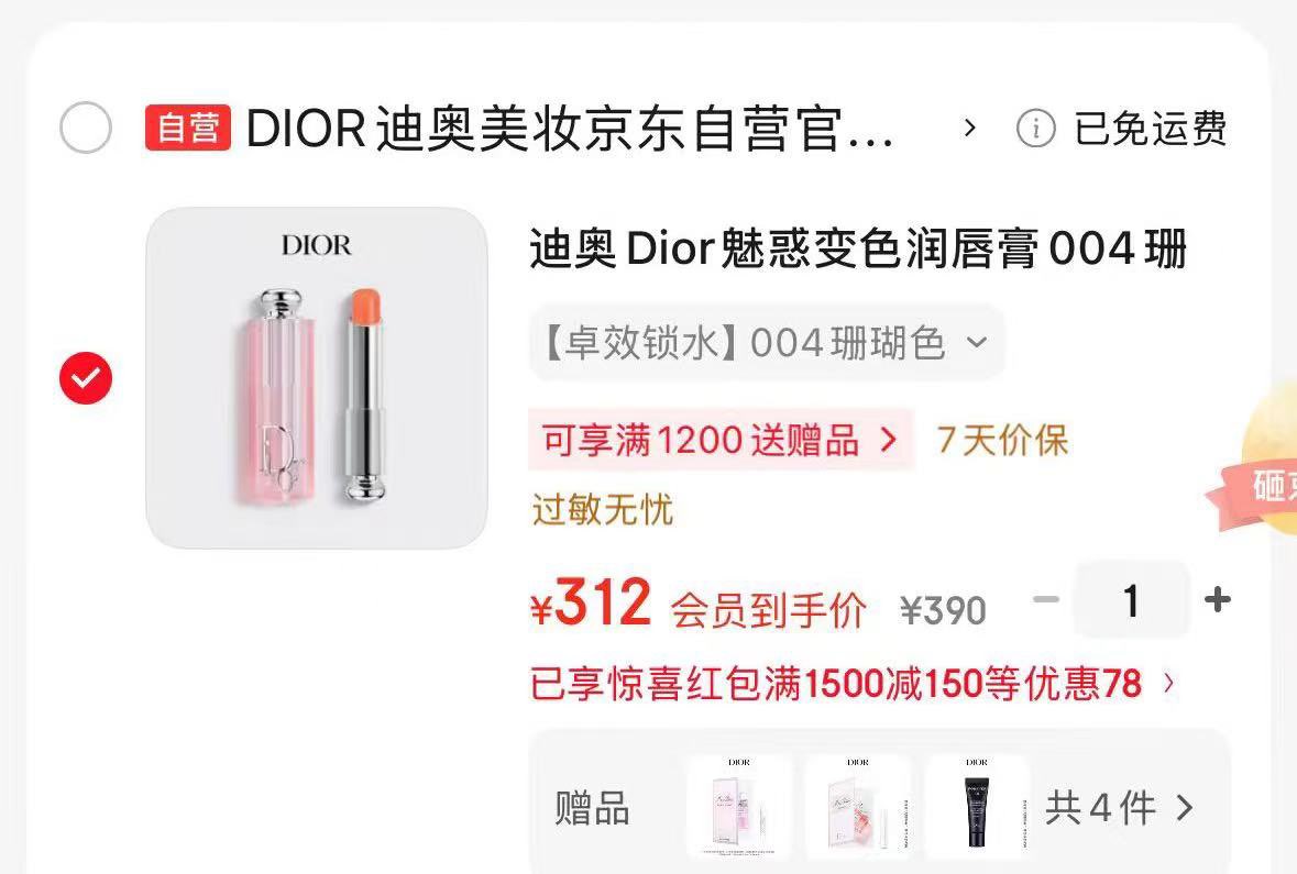 膨胀得1500-150券 迪奥Dior魅惑变色润唇膏口红 凑后312元