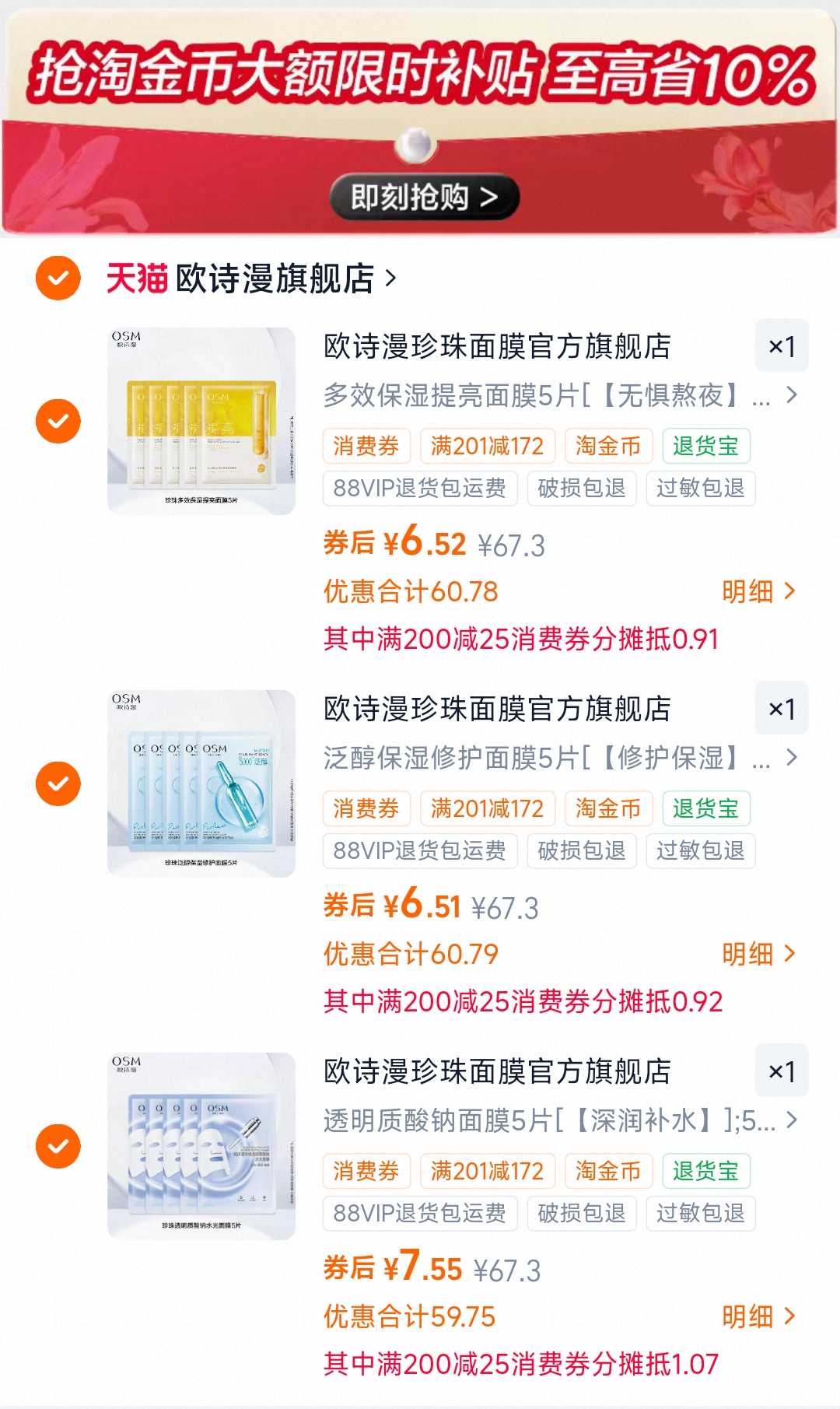 20.5元 折1.3元/片 下拉详情下3件 欧诗漫补水修护面膜好单发报员2026年03月19日 09:000举报 20.5元 折1.3元/片1下拉详情下3件欧诗漫补水修护面膜https://m.tb.cn/h.ig0vx0T复制文案