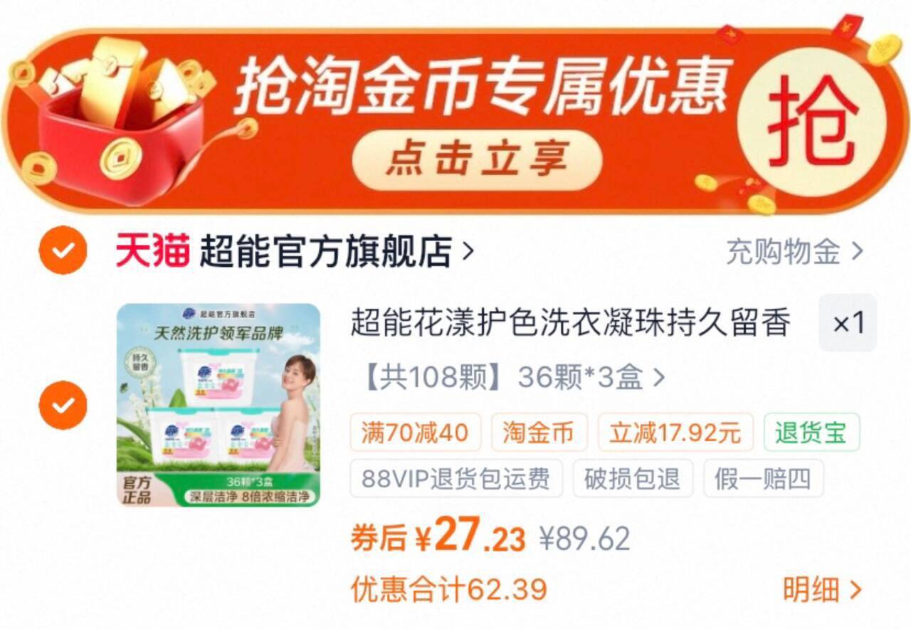 0.2/颗 超能花漾护色洗衣凝珠 27.2元108颗到手整整3盒 下拉好单发报员2026年03月20日 13:340举报 0.2/颗 超能花漾护色洗衣凝珠27.2元108颗到手整整3盒下拉 一颗=洁净 柔顺 护色!https://m.tb.cn/h.iTYVZoE复制文案