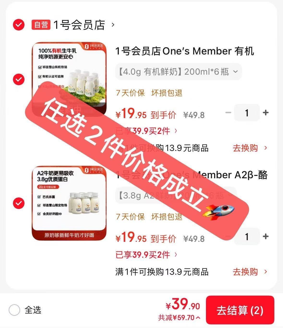 A2/有机鲜牛奶200ml*6瓶