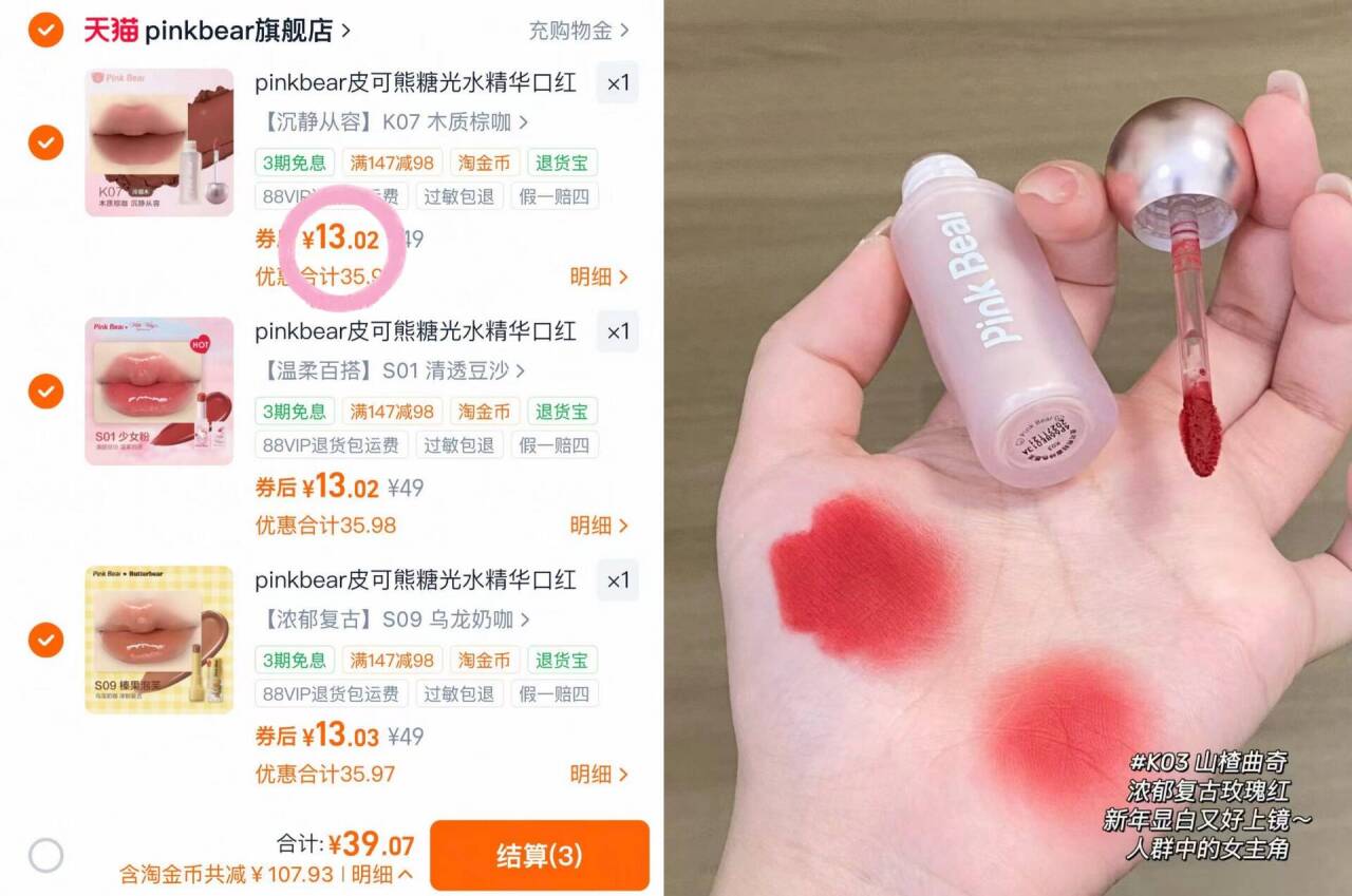 抢皮可熊唇釉 自动抵金币拍三支 镜面/雾面都有 色号都超显白