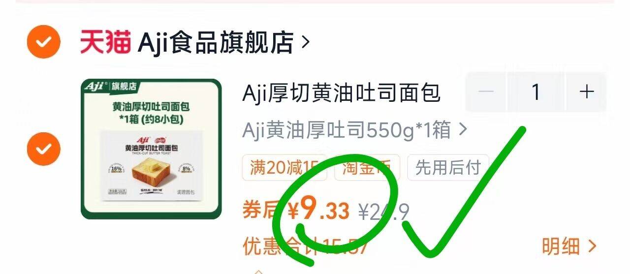 Aji厚切黄油吐司面包550g 9.9元 库存少 速度好单发报员2026年03月21日 00:100举报 Aji厚切黄油吐司面包550g9.9元 库存少 速度https://m.tb.cn/h.igvxiYShttps://m.tb.cn/h.igvxbM2复制文案