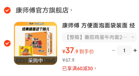 康师傅 番茄鸡蛋牛肉面 24袋