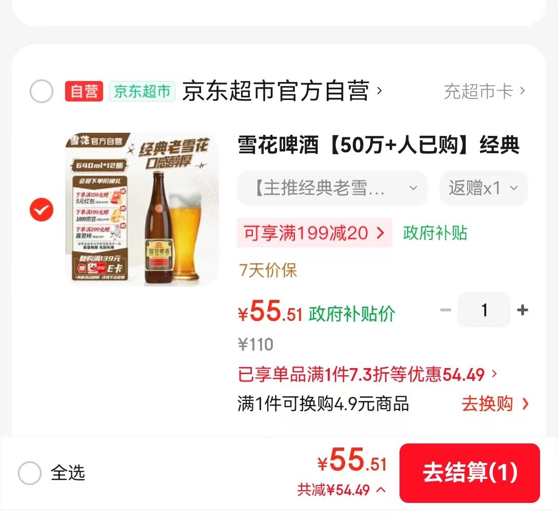 小神忦!自营老雪花