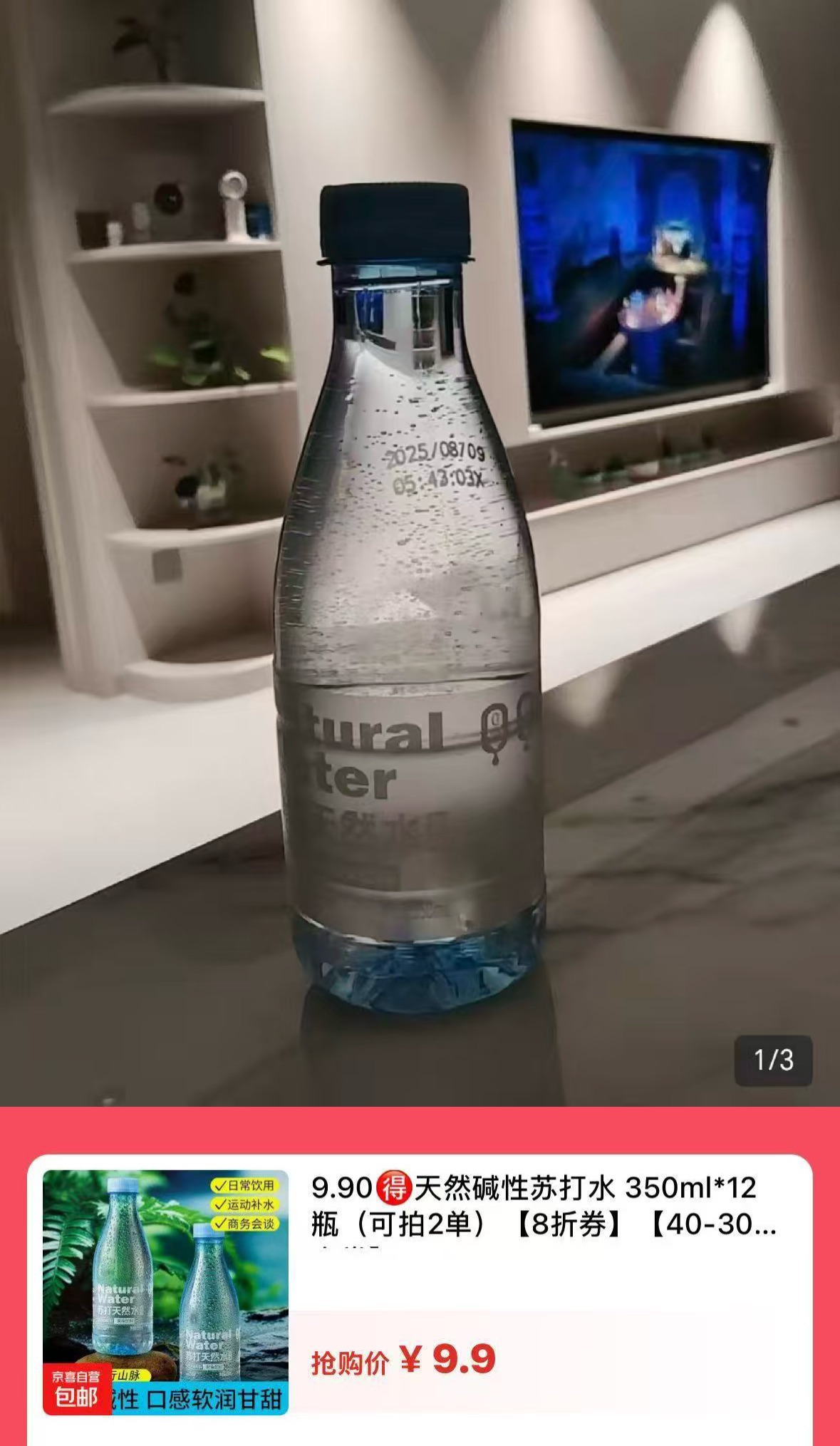 9.9包由,天然碱性苏打水 350ml*12瓶(可拍2单)
