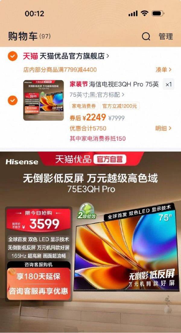 海信电视E3QH Pro 75英寸