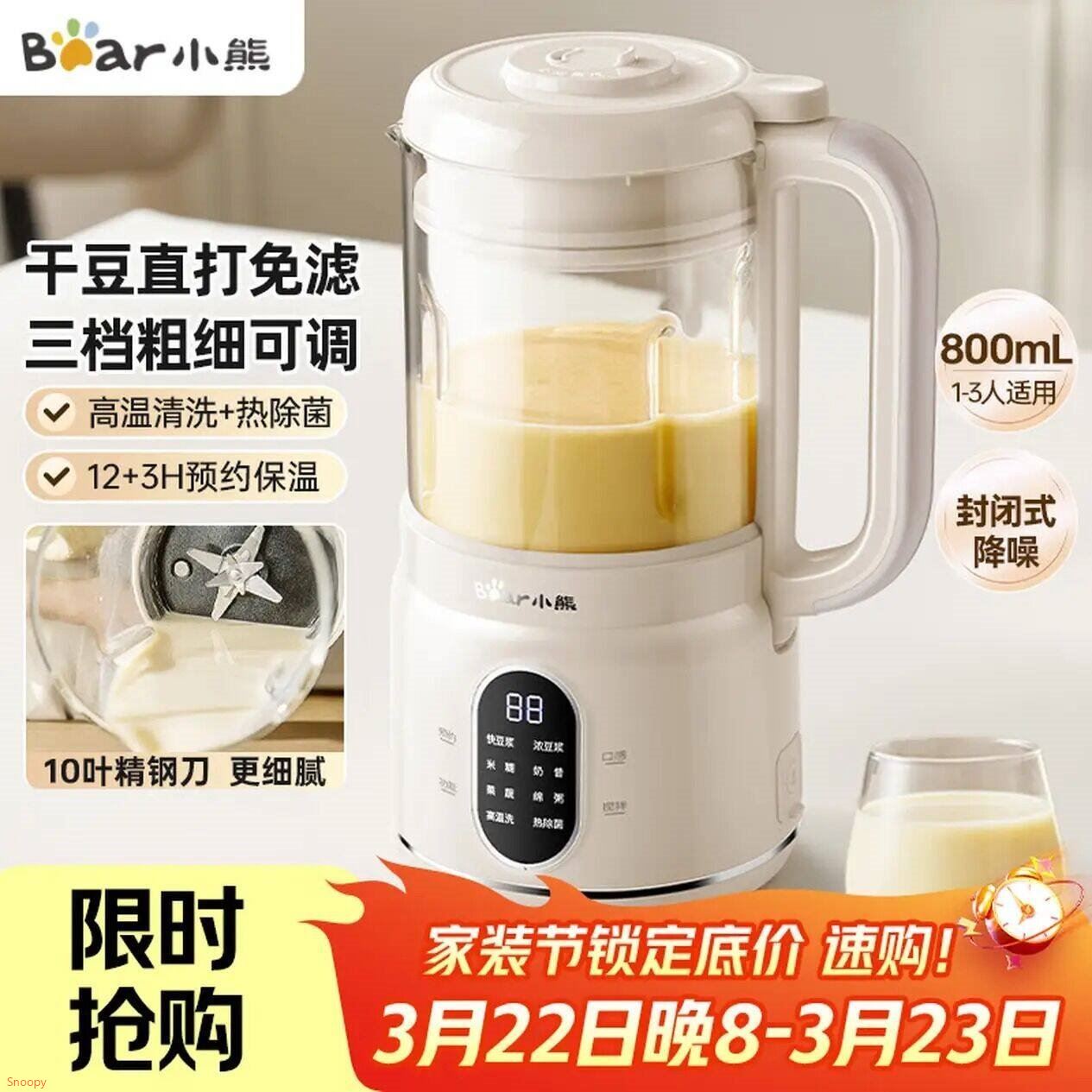 【自营】小熊 家用破壁机0.8L