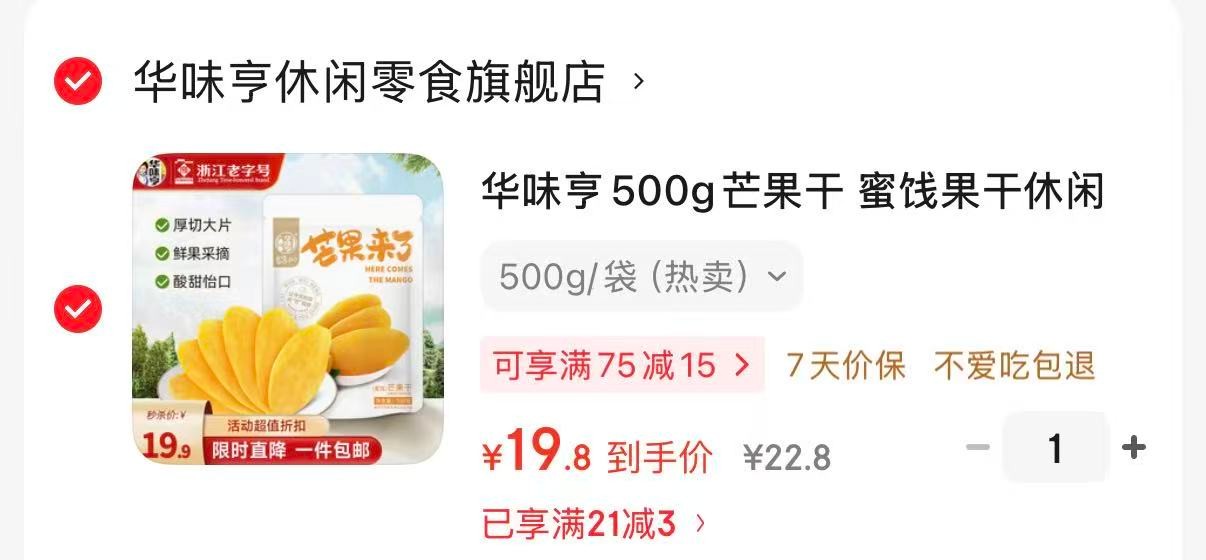 华味亨 芒果干 蜜饯果干500g【19.8】