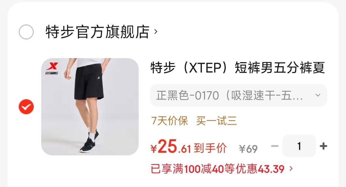 特步官方透气速干裤,25.6