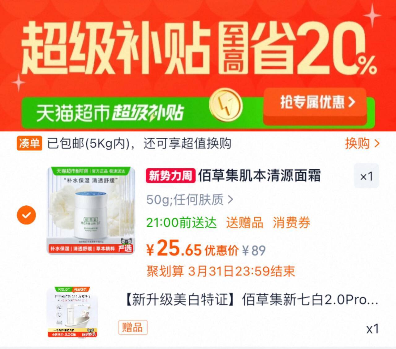 下拉详情 vlp 首次加贈 这次拍下送30ml化妆水 佰草集.面霜50克
