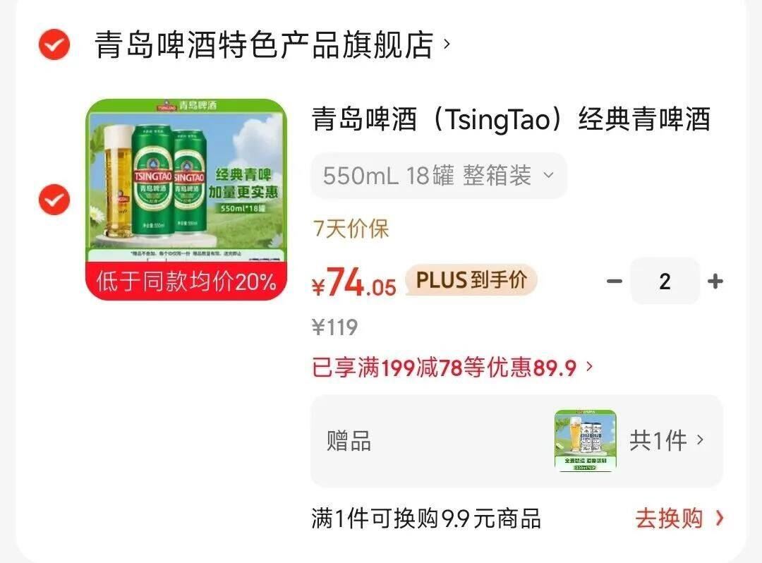 74元/箱 下单赠白啤330ml*6罐 青岛啤酒 经典青啤酒550mL*18罐 好单发报员 2026年03月23日 11:49 0 举报 74元/箱 下单赠白啤330ml*6罐青岛啤酒 经典青啤酒550mL*18罐https://u.jd.com/cazqqjb拍2件148.1元 到手3箱啤酒! 复制文案