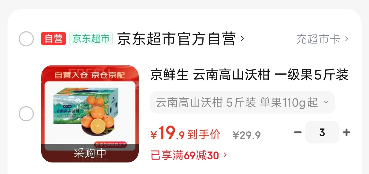 京鲜生水果 脐橙、粑粑柑、丑橘、圣女果、沃柑、人参果、西柚、柿饼、黄西瓜等,专区任选3件【59.7】