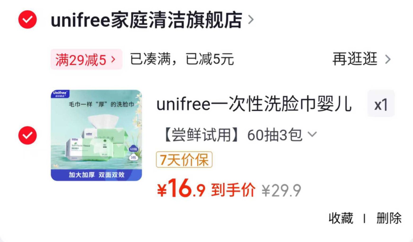 unifree 一次性洗脸巾60抽*3包【16.9】