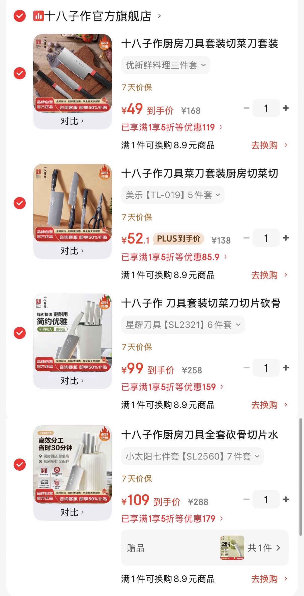 十八作子刀具套装 领5折券 刀具套装三件套 49元 刀具套装5件套 plus