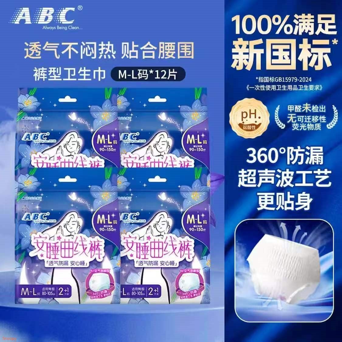 ABC 透气贴合棉柔安睡裤12条